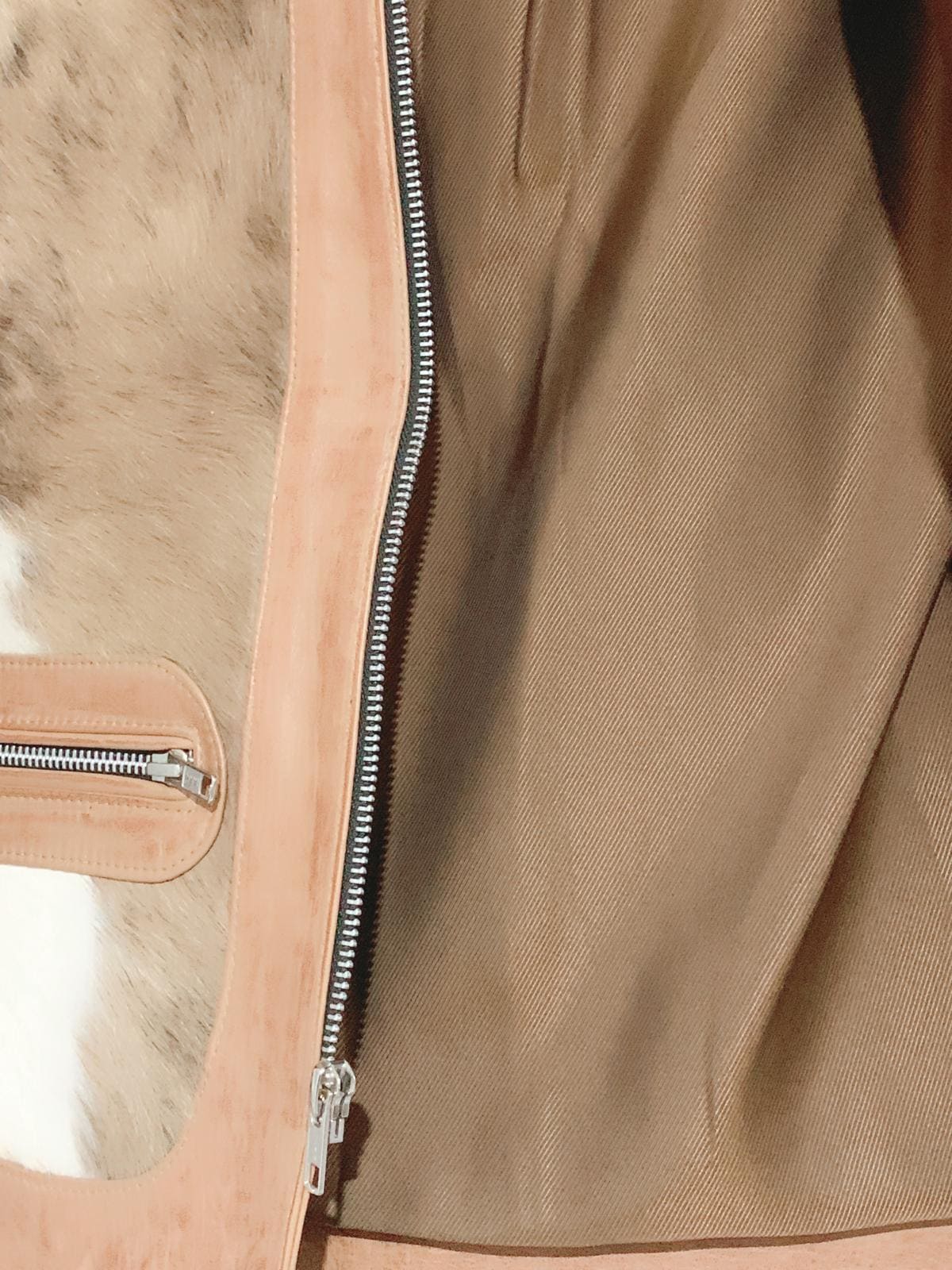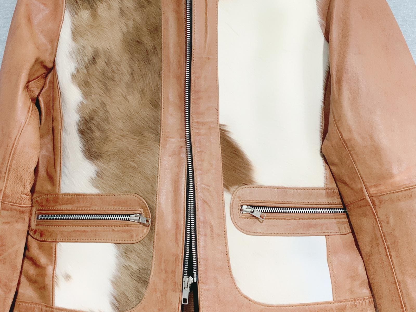 Elevate your everyday style with this stunning cowhide jacket that brings timeless sophistication to any wardrobe. Crafted with premium materials and rustic charm, it features distinctive panels that add character and depth to your look. Perfect for layering over casual outfits or dressing up your evening wear, this piece transitions seamlessly from season to season. The quality construction ensures durability, while the classic design means you'll reach for it again and again. Whether you're heading out for coffee or a night out, this versatile staple delivers effortless elegance with an edge.